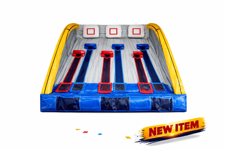 The giant basketball game features oversized hoops and bright colors that attract attention and keep guests entertained for hours. Players take turns shooting basketballs into the hoop while friends and family cheer them on. It’s easy to play and fun for kids, teens, and adults.